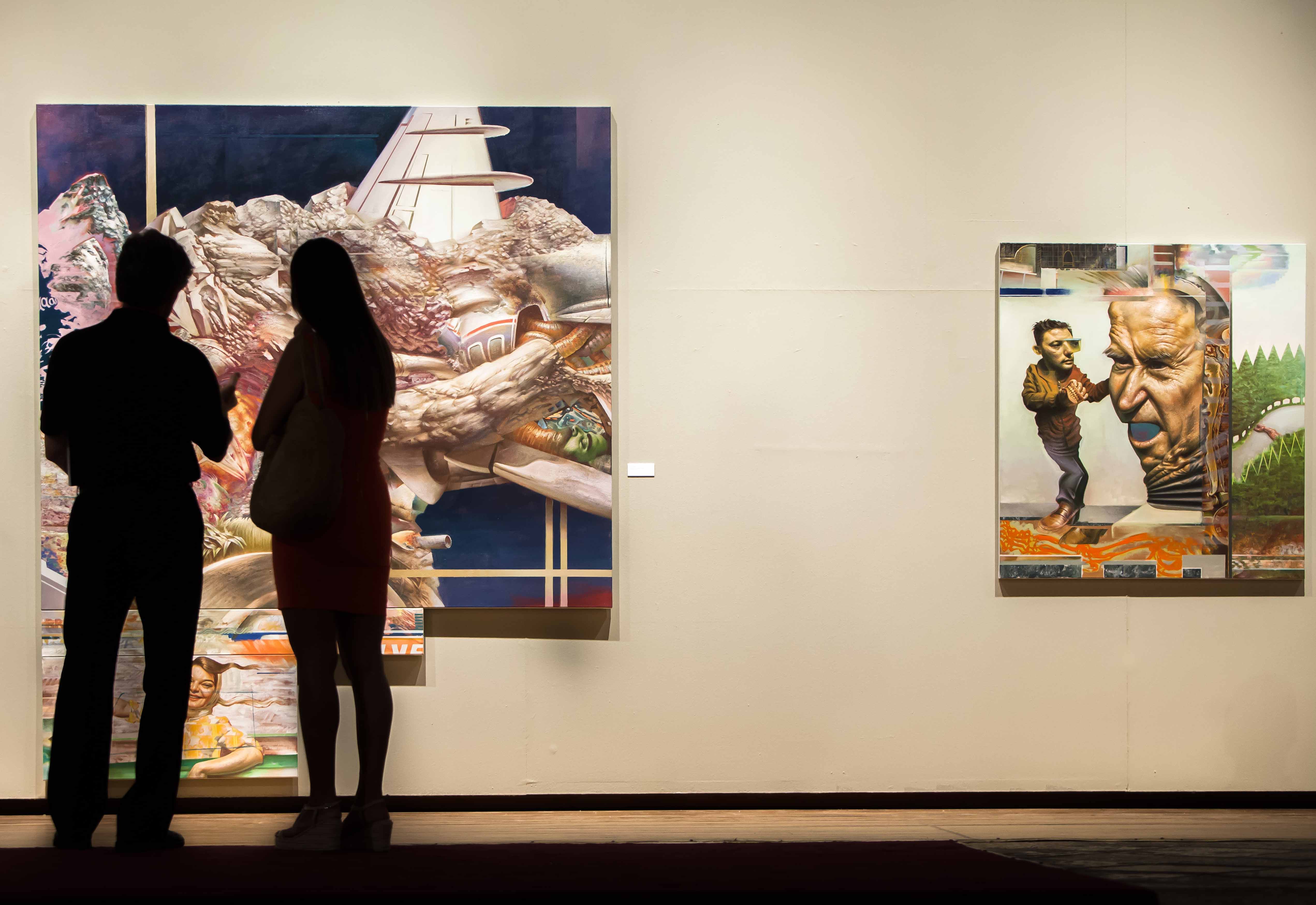 His painting carries as a constant refrain a philosophical undercurrent of futility and sarcasm, combined with a Dionysian spirit — more as Kubrick might have understood it, rather than Fellini. Moschos’s visual idiom relinquishes any overt national or local identity in favor of an international a-topia, yet in a way that remains cohesive and personal. Within his work (which can readily speak to an international audience) lie the seeds of his formative influences: likely the iconographic tradition inherited from his father, as well as his exposure to the Great Masters of the Renaissance and Baroque. All these influences, Moschos metabolizes into a chromatic and stylistic language now in full bloom in Heraklion.