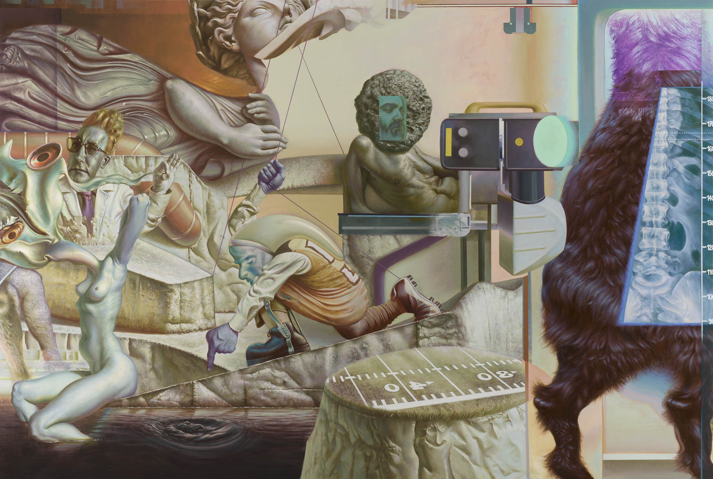 The sleeplessness of reason…, 2024, acrylic and oil pastel on linen, 290x195 cm