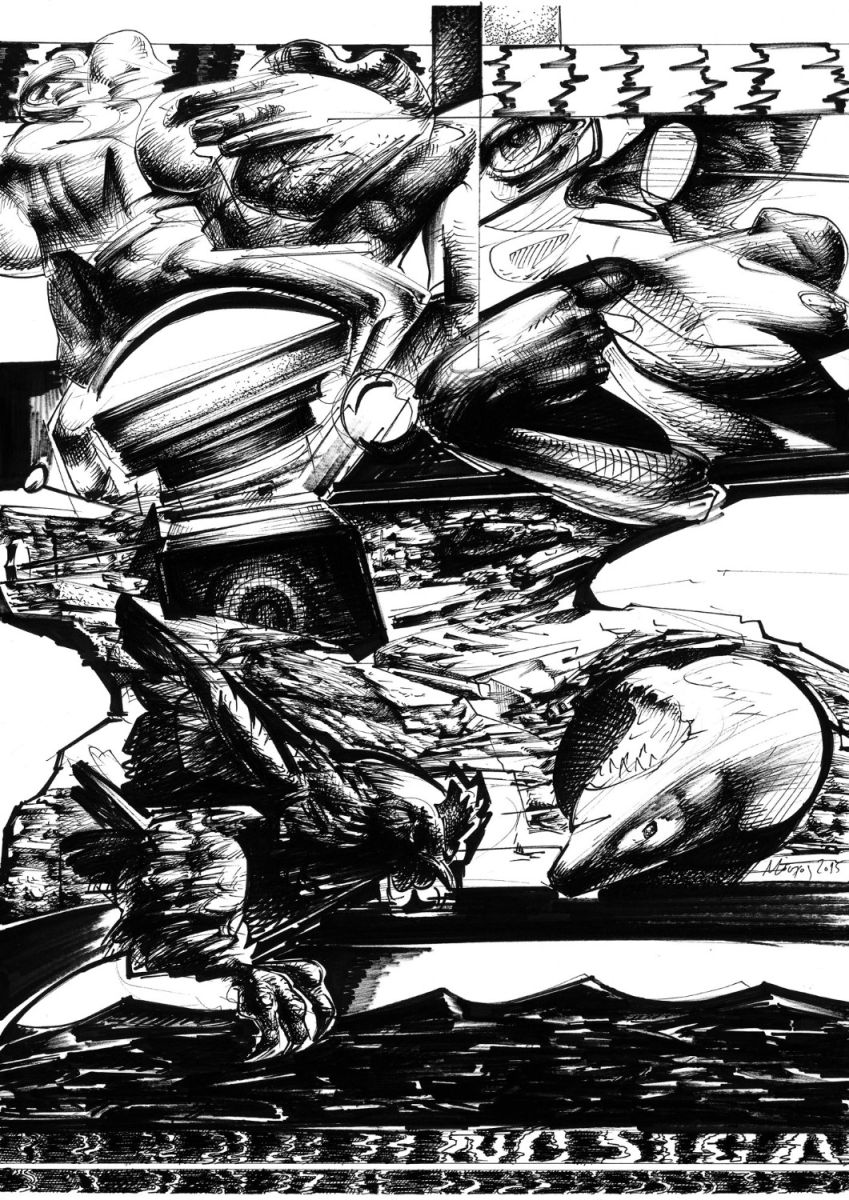 The Great White Thiefrapidograph, markers on paper/ 42x29.7 cm/ 2015