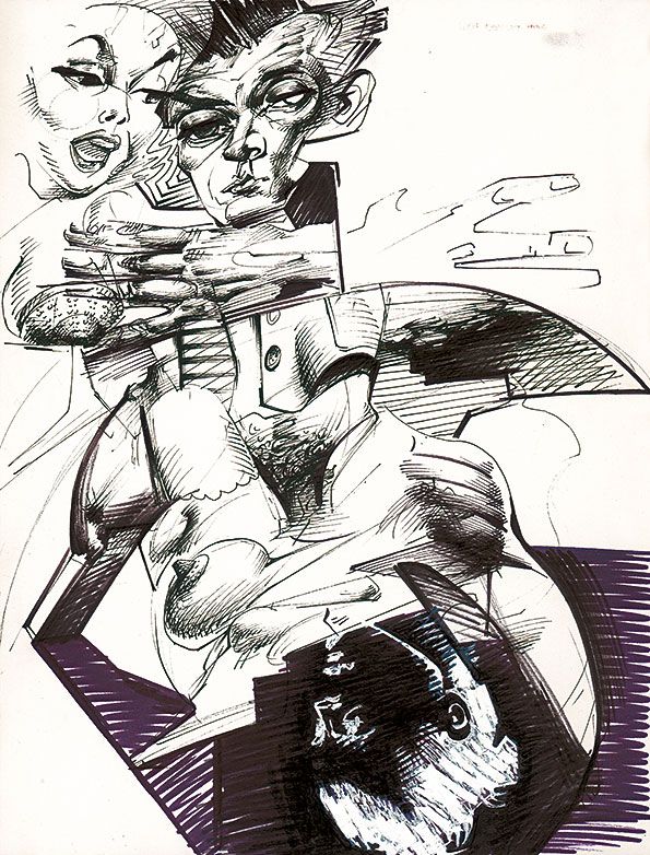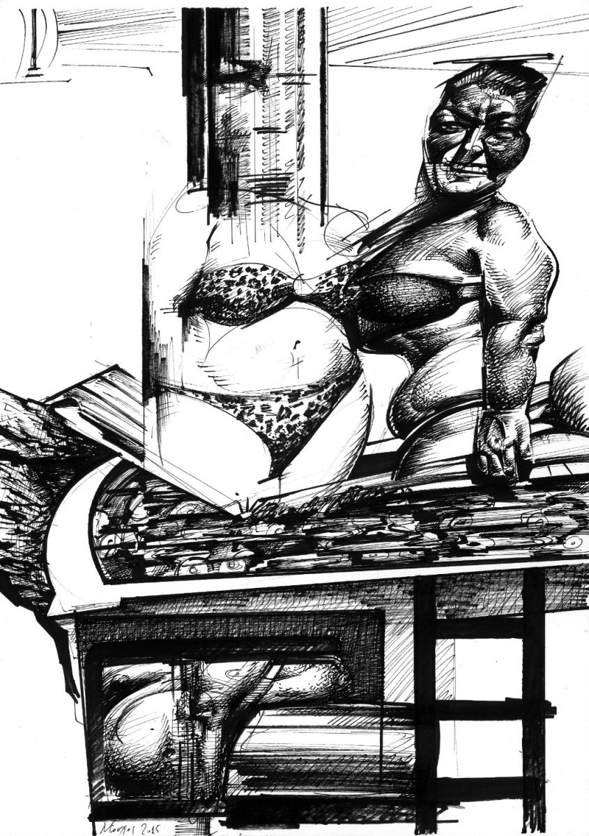 Schiele at the age of fifty-sixrapidograph, markers on paper/ 40x30 cm/ 2015