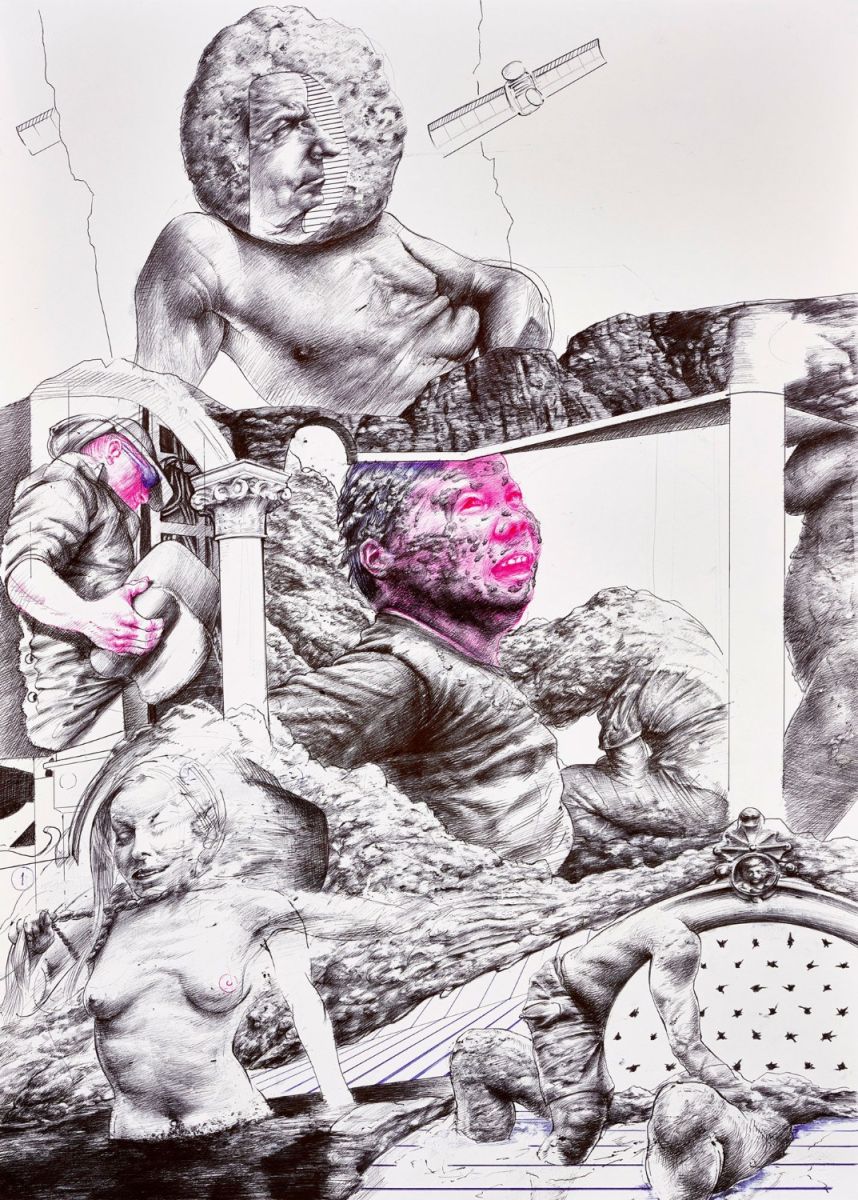 ballpoint pen and collage on paper/ 70x50 cm/ 2020