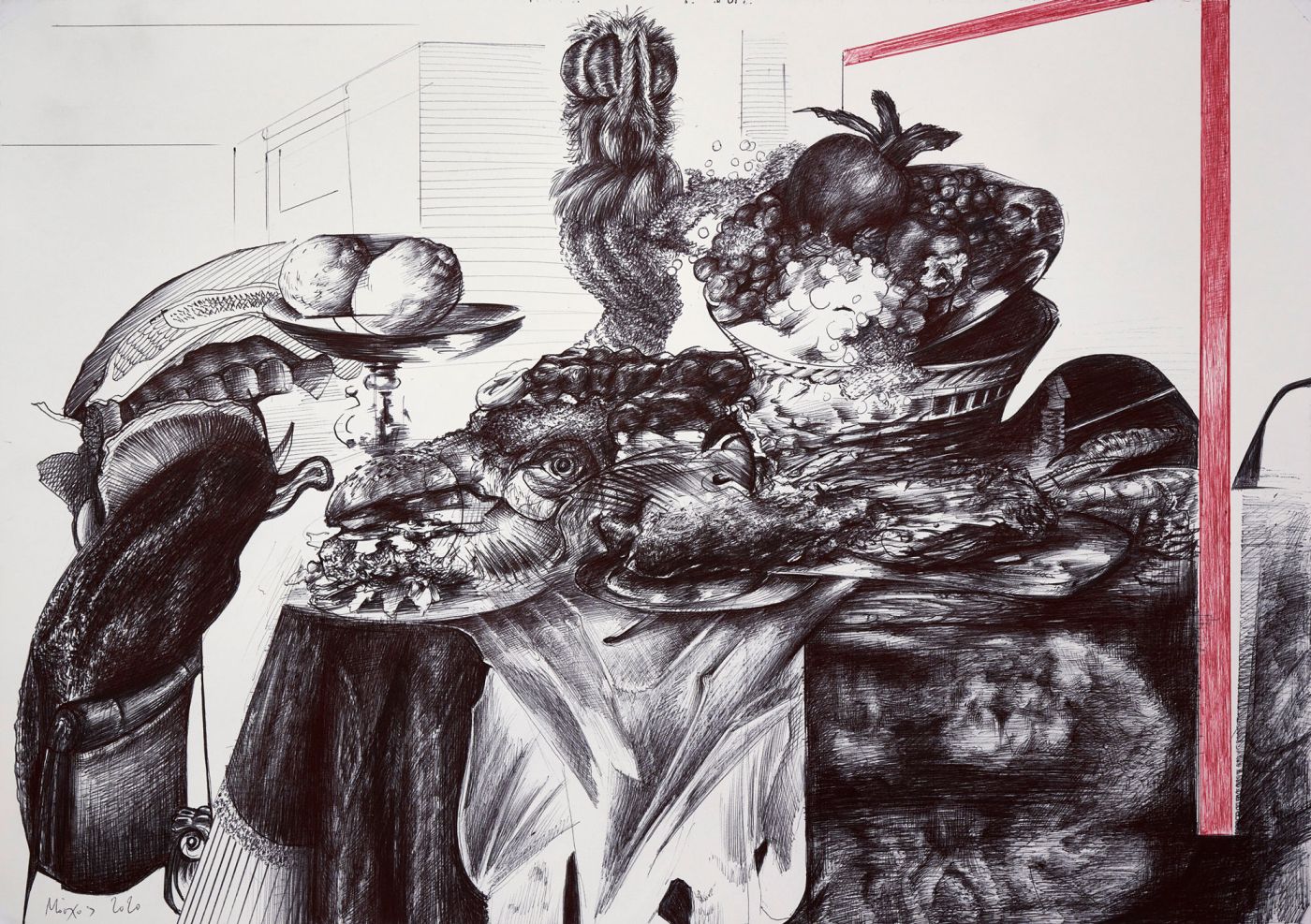 after de heem study no 1 2020 ballpointpen on paper 29x42 cm after de heem study no 1 2020 ballpointpen on paper 29x42 cm