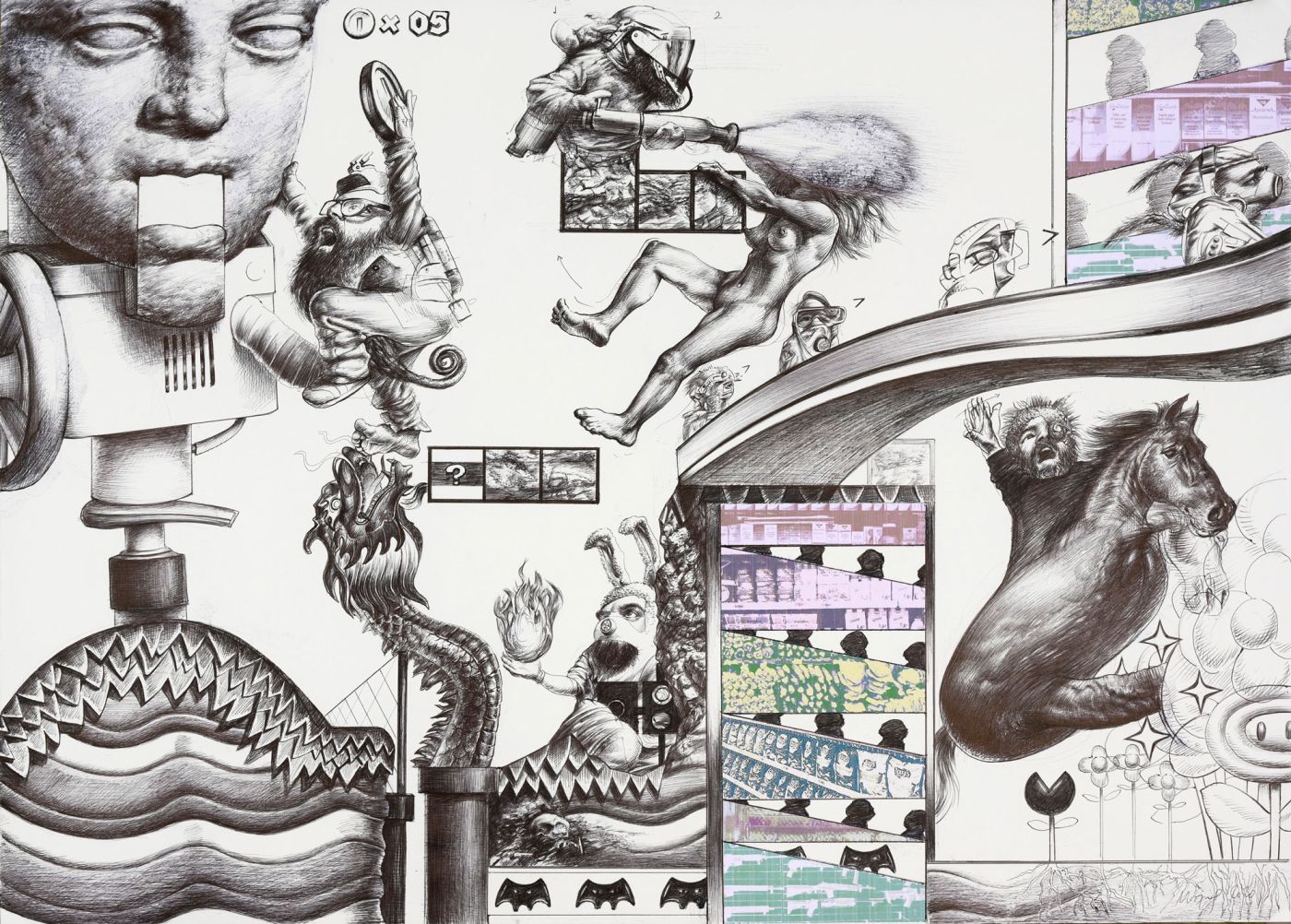 rapidograph, pencil, markers, pastel and collage on paper/ 60x42,5 cm/ 2018